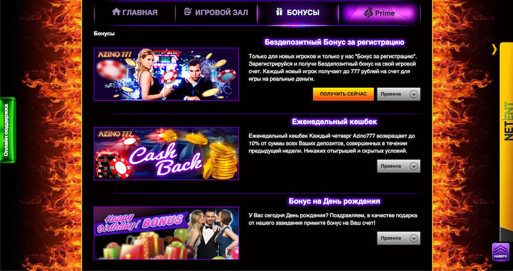 Azino777 предлагает своим клиентам большую и разнообразную систему поощрений, которая направлена на новых клиентов и постоянных пользователей. Бонусы помогают сделать геймплей более выгодным. Вы будете тратить для ставок подаренные платформой средства и при этом получать реальные выигрыши, в случае выполнения всех условий.